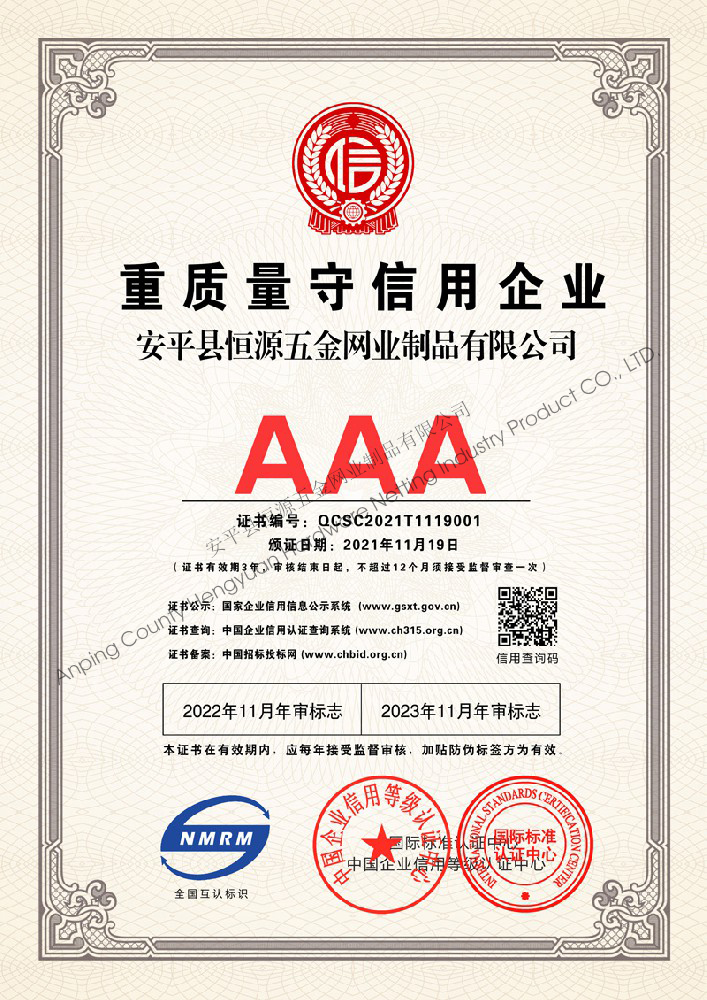 多年來(lái),安平縣恒源五金網(wǎng)業(yè)制品有限公司堅(jiān)持“科技興企、質(zhì)量立業(yè)”的經(jīng)營(yíng)理念和“誠(chéng)心為本、客戶至上”的合作宗旨,優(yōu)化生產(chǎn)工藝,打造優(yōu)質(zhì)產(chǎn)品,提供完善的服務(wù),受到國(guó)內(nèi)外客戶的一致好評(píng),產(chǎn)品行銷全國(guó)各地,并出口美國(guó)、德國(guó)、韓國(guó)、日本、臺(tái)灣等國(guó)家和地區(qū)。